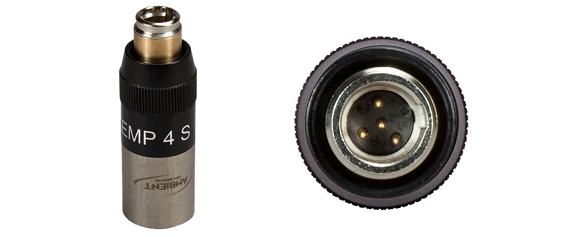 The EMP4S Electret Microphone Power Adapter from Ambient Recording allows hardwired use of a lavalier mic by converting phantom 48V to 5.6V electret power, and outputs an electronically balanced signal with low impedance. This adapter is designed for use with Shure, Beyerdynamic, and MIPRO microphones, and converts a 4-pin Switchcraft connector to a standard 3-pin XLR male connector.