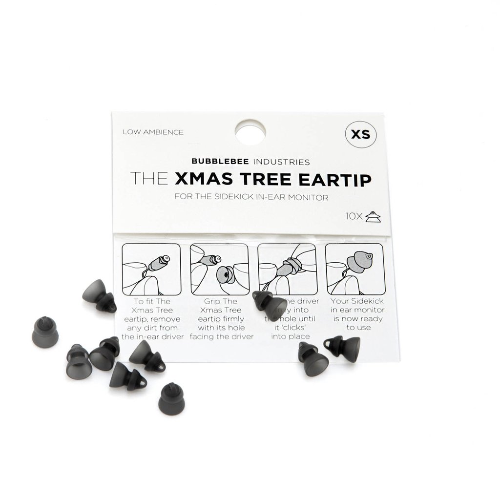 The extra-small, 10-pack of The Sidekick Christmas Tree Eartip from Bubblebee is an accessory eartip for the Sidekick In-Ear Monitor (sold separately). This eartip offers comfortable all-day wearability and low ambience of your environment, while still having crystal clear communication delivered to the left, right, or both ears.