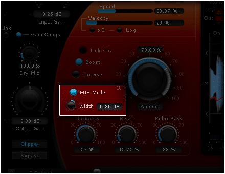 • Thickness fattens up the processed material by enhancing the low level frequencies