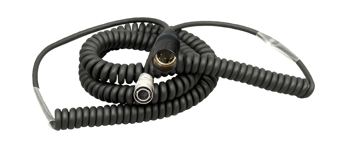 Coiled mixer/camera loom, Hirose 12-pin to XLR-7M