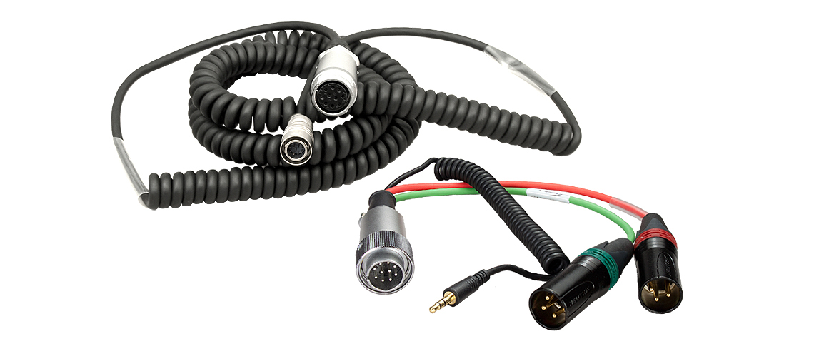 The 4.6 to 16.4’ HBS12HY10-35 Hirose 12-Pin Male to Hirose 10-Pin Female Coiled Breakaway Cable from Ambient Recording comes with a Y cable and is used with Wendt X4 4-Channel and Wendt X5 5-Channel Mixers. The signal returns via a TRS mini plug on the coiled cord.