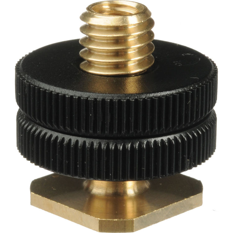 The Rycote 037302 Hot Shoe Adaptor with 3/8" Male Thread lets you attach any fitting with a 3/8" thread to a camera hot shoe.