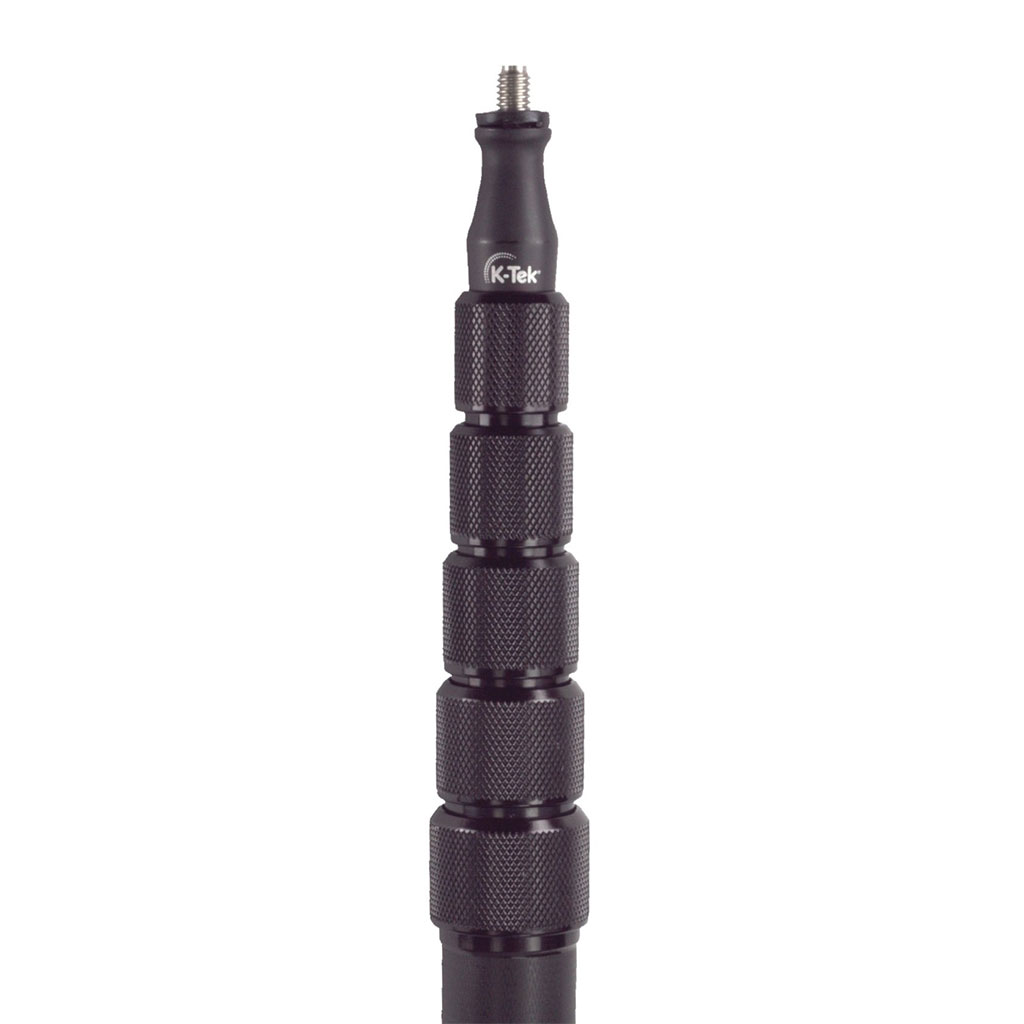 KC134, K-Tek Indie Pole – 11’2”, 6 section, carbon composite, uncabled boom pole. Collapsed length – 35.75″ (0.91 m), extends to 11’2” (3.4 m). Boompole weighs 1.56 lbs. (.7 kg). The top attachment, standard 3/8″ – 16 male thread. Knurled Collars for firm grip, smooth finish on tubes for clean extension.