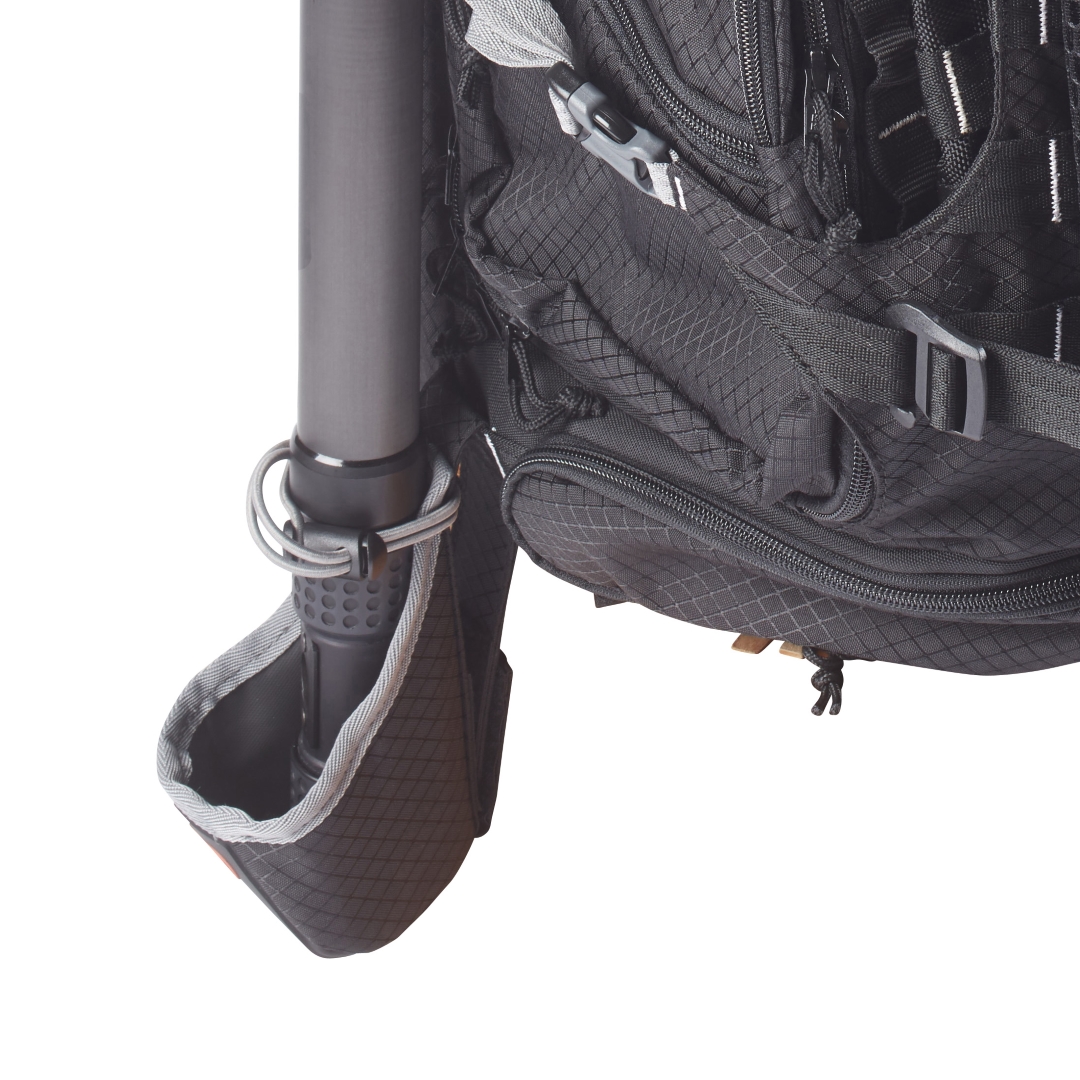 Convenient Boom Holder Cup for storing and holding boompoles. The Stingray Boom Cup Holder can attach to MOLLE straps like on the Stingray mixer bags or the limited-edition Stingray Backpack. Can also be screwed into various carts or onto gear storage racks.