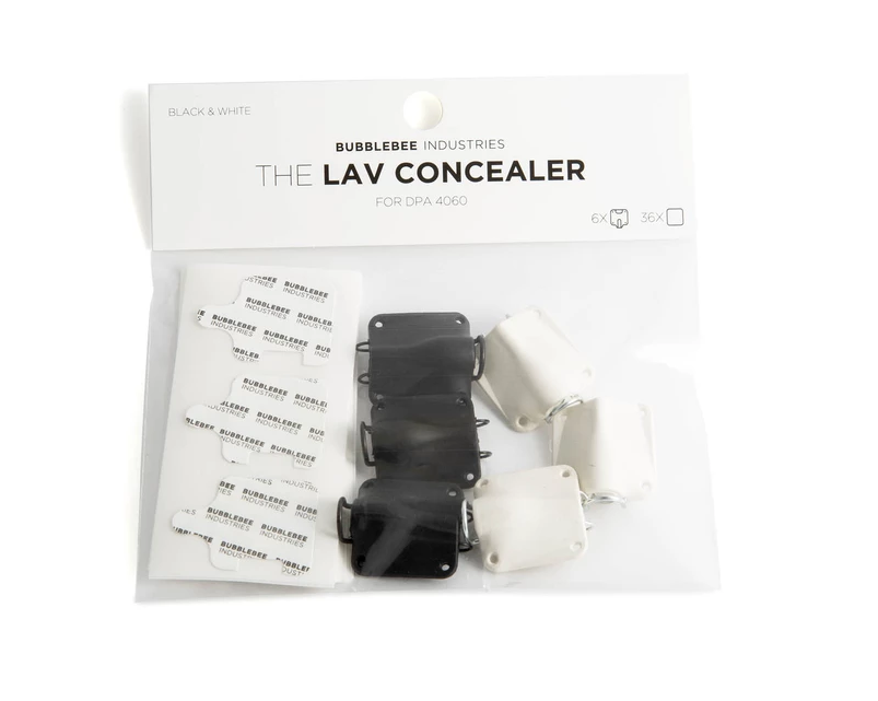 Presented as a set of six (three black and three white), the Lav Concealer for DPA 4060 from Bubblebee Industries is for mounting DPA 4060, 4061, 4062, or 4063 lavalier microphones (available separately) on the body and in clothing or costumes, making it ideal for broadcast, theater, and television production. This soft, pliable mount also acts as a shockmount and barrier, protecting the microphone capsule from vibrations and friction, and giving you cleaner audio quality. In addition, each Lav Concealer includes a customizable clothing clip, a wire fabric guard, and six pieces of The LAV Concealer tape.