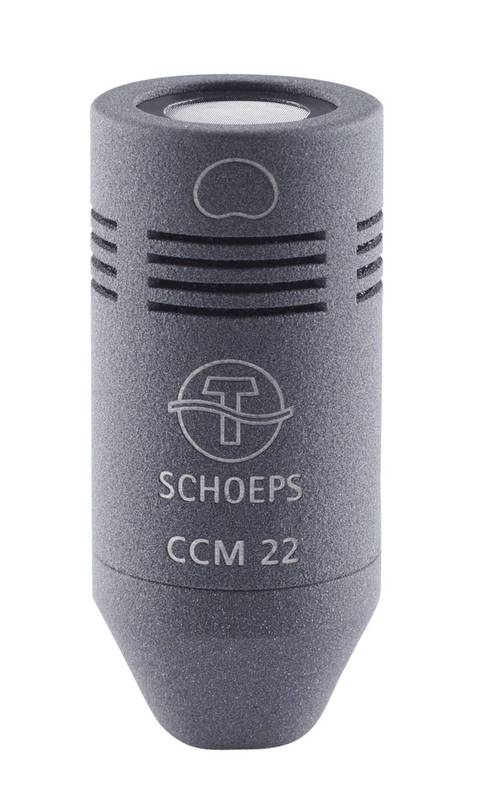 The CCM 22 has been developed for use as a spot microphone. It unites the strengths of the CCM 4 and CCM 21 microphones. Its directionality is only slightly less than that of the CCM 4 cardioid, while its sonic character is reminiscent of the CCM 21 wide cardioid. Its directivity is essentially constant throughout the frequency range. Its inherent low-frequency response is somewhat more pronounced than that of the cardioid, while proximity effect is somewhat less.