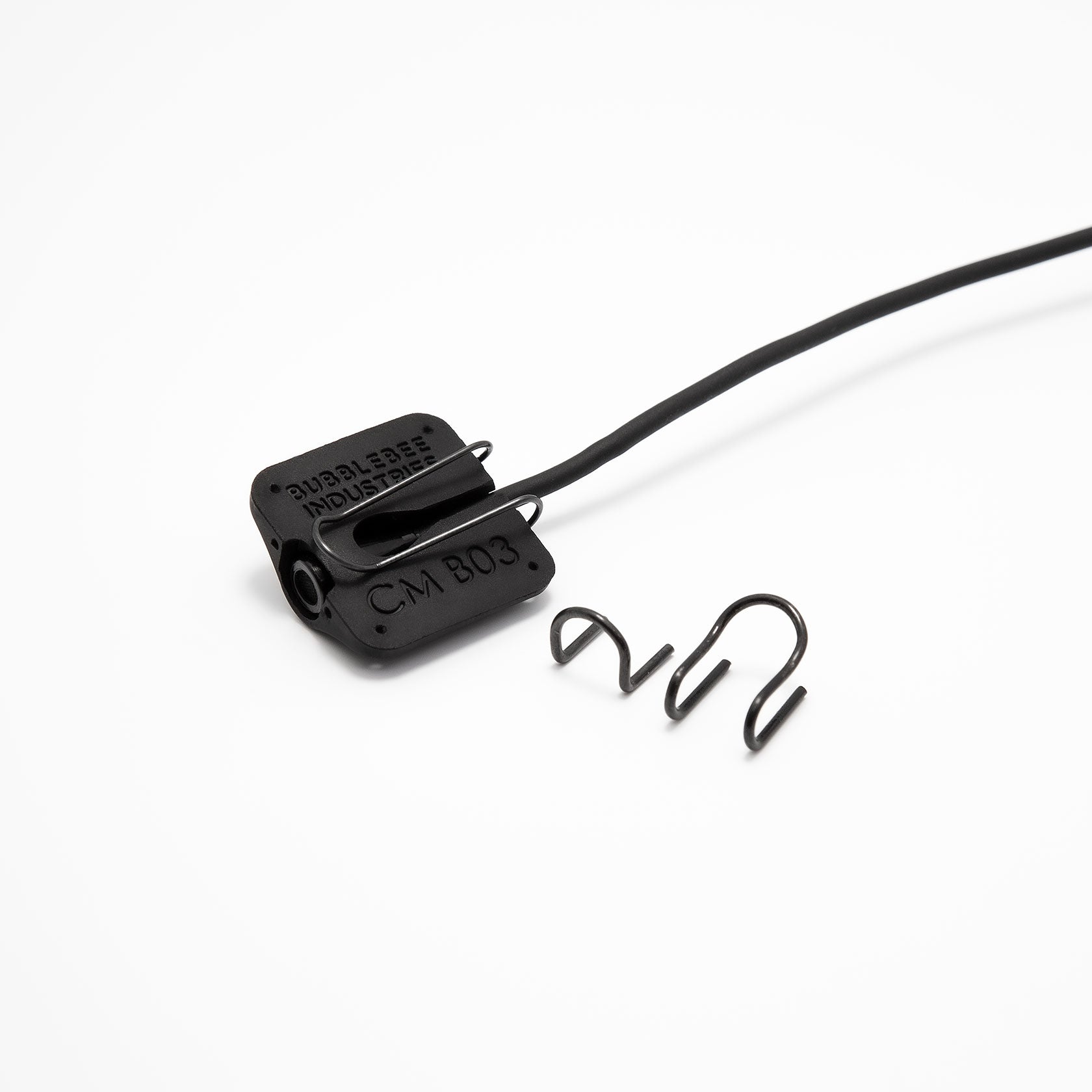 The moulded rubber concealer is made for excellent vibration and friction absorption, while the metal clothing clip and fabric guards prevent the transmission of vibration through the concealer to the microphone capsule.