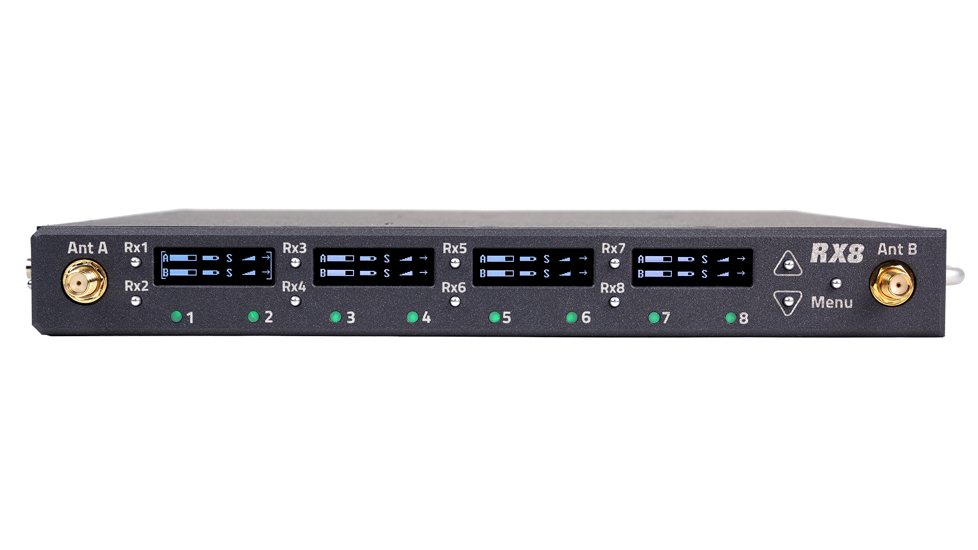 The RX-8’s built-in MicPlexer gives you an additional 3dB of RF amplification and antenna distribution for the two internal MRX slot-in receiver modules and additional receiver channels connected to the RF output connectors of the RX-8.