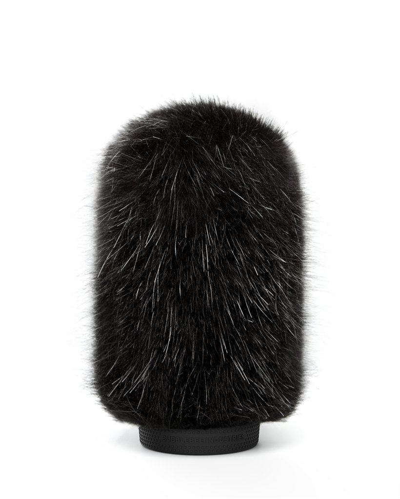 The black, medium-sized Windkiller Long Fur Slip-On Wind Protector for 18 to 24mm Mics from Bubblebee Industries is a wind protector that fits shotgun microphones. It can be used in outdoor environments to reduce wind noise when capturing audio for video, broadcast TV, ENG applications, and more.