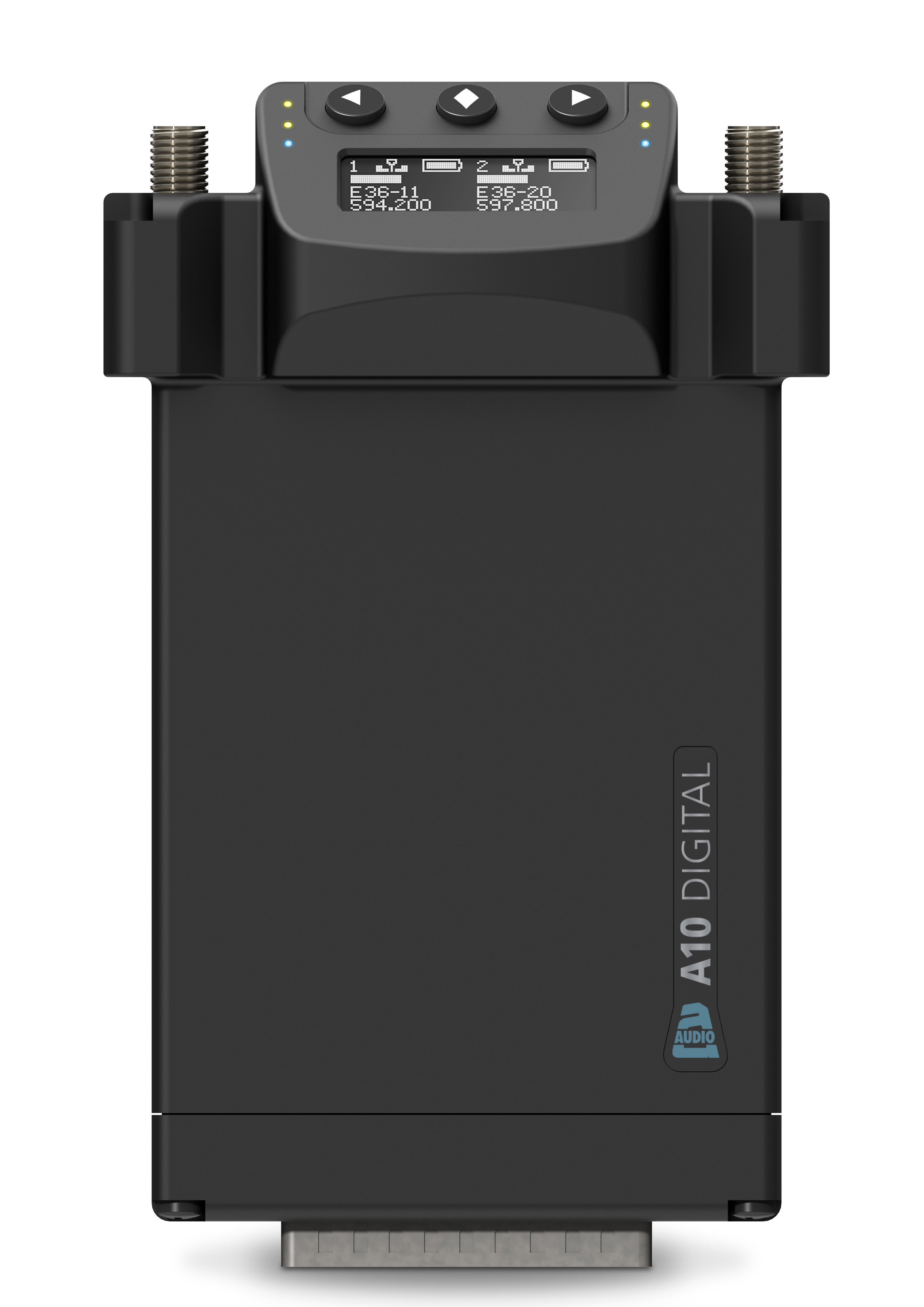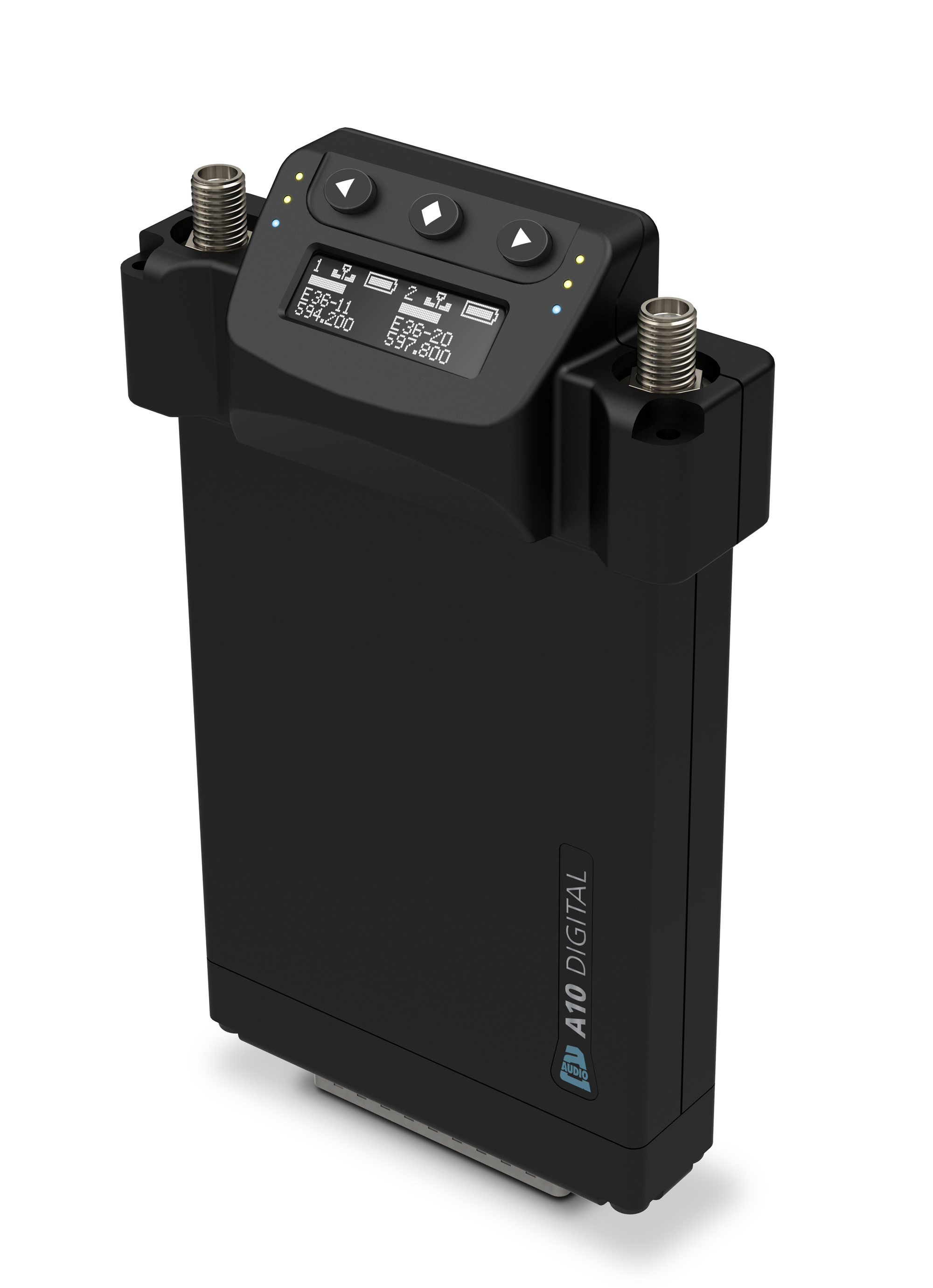 The two-channel A10-RX receiver is an advanced digital tool that works with either one or two A10-TX transmitters. With its Advanced Digital Diversity System the A10-RX receiver selects the best signal between each channel's two receivers. When at the limits of system operation ADDS combines error-free digital packets from each receiver. This results in lossless, wireless digital audio up to the absolute limits of operation.
