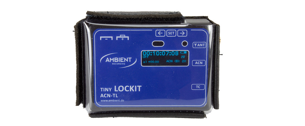 The ACN-TL-T Pouch for Ambient Tiny Lockit by Ambient Recording is a leather pouch with a transparent foil window. It features cut outs for connectors and on/off switches. Built with double-faced adhesive hook and loop tape.