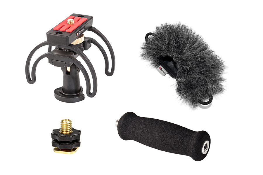 A combined Windshield and Suspension solution, the kit contains everything needed to protect a handheld digital recorder from outdoor wind noise, and also to isolate it from unwanted vibrations, whether from handling or stand-borne noise. It is aimed at journalists, film-makers, or anyone using a handheld digital recorder to make professional-quality audio recordings outdoors. It can be used location soundtracks or outside broadcast, or for simple audio podcasts or outdoor radio reporting.