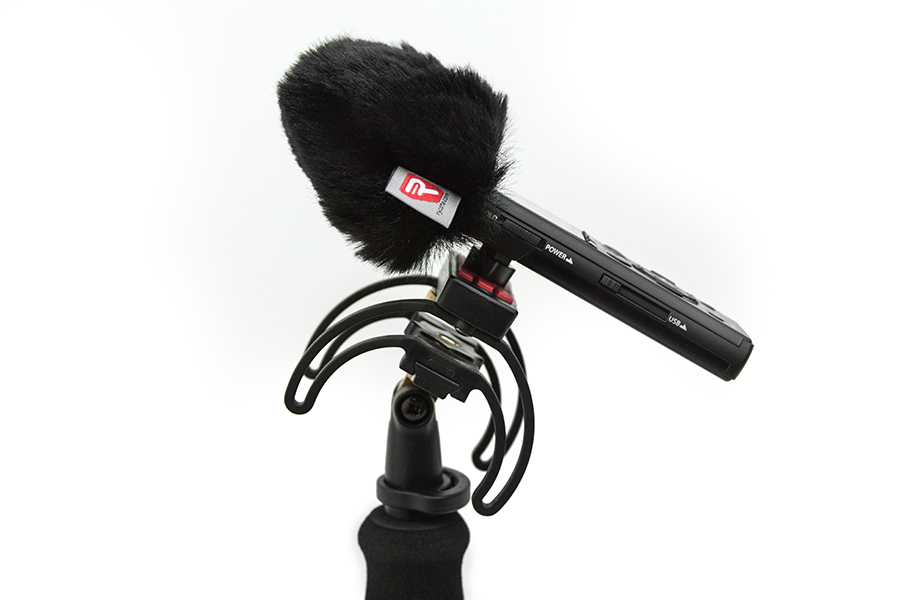 A combined Windshield and Suspension solution, the kit contains everything needed to protect a handheld digital recorder from outdoor wind noise, and also to isolate it from unwanted vibrations, whether from handling or stand-borne noise. It is aimed at journalists, film-makers, or anyone using a handheld digital recorder to make professional-quality audio recordings outdoors. It can be used location soundtracks or outside broadcast, or for simple audio podcasts or outdoor radio reporting.