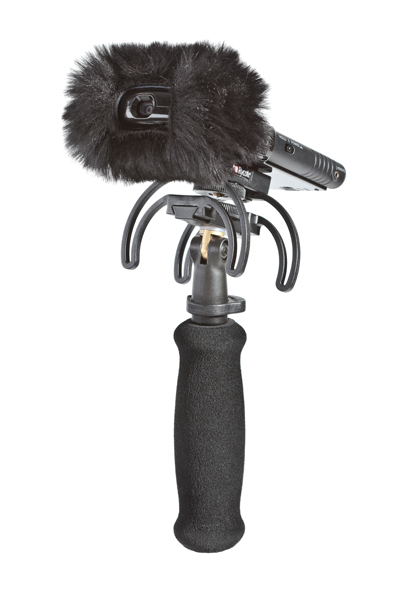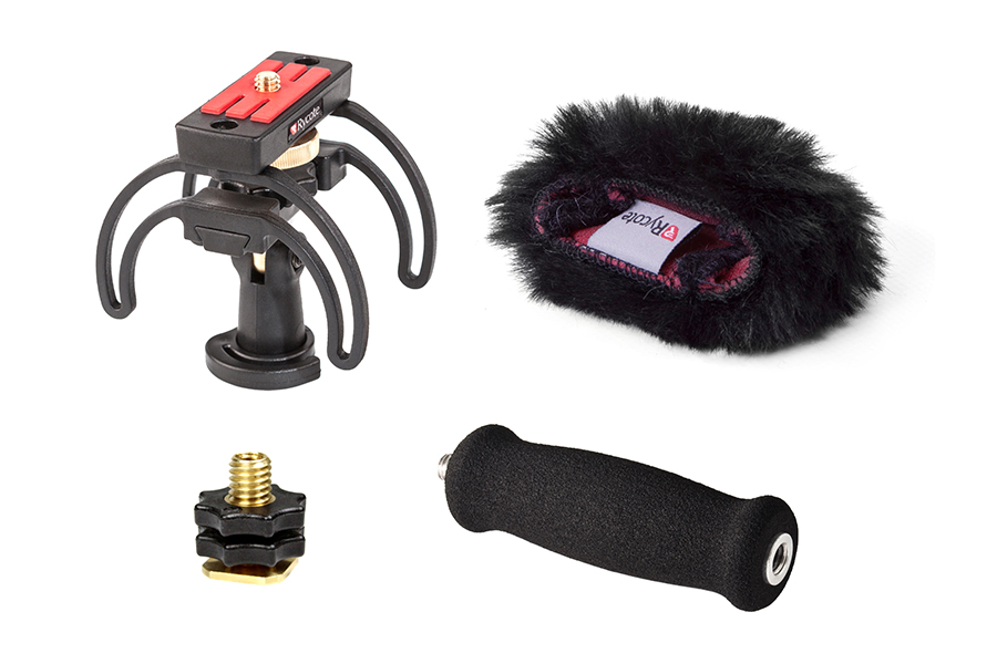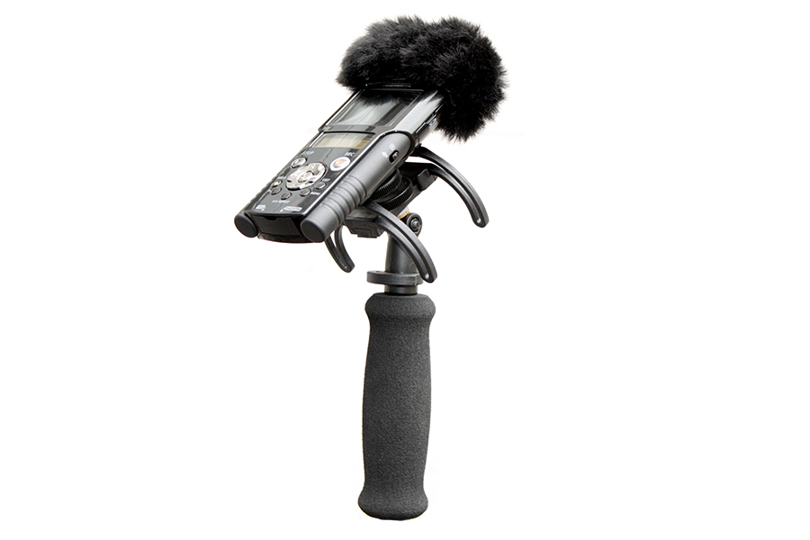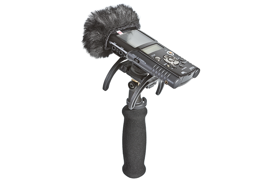 A combined Windshield and Suspension solution, the kit contains everything needed to protect a handheld digital recorder from outdoor wind noise, and also to isolate it from unwanted vibrations, whether from handling or stand-borne noise. It is aimed at journalists, film-makers, or anyone using a handheld digital recorder to make professional-quality audio recordings outdoors. It can be used location soundtracks or outside broadcast, or for simple audio podcasts or outdoor radio reporting.