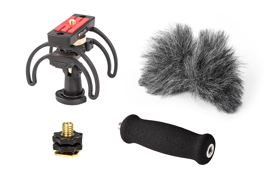 A combined Windshield and Suspension solution, the kit contains everything needed to protect a handheld digital recorder from outdoor wind noise, and also to isolate it from unwanted vibrations, whether from handling or stand-borne noise. It is aimed at journalists, film-makers, or anyone using a handheld digital recorder to make professional-quality audio recordings outdoors. It can be used location soundtracks or outside broadcast, or for simple audio podcasts or outdoor radio reporting.