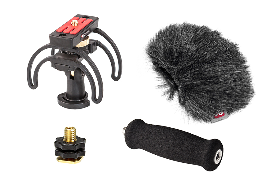 A combined Windshield and Suspension solution, the kit contains everything needed to protect a handheld digital recorder from outdoor wind noise, and also to isolate it from unwanted vibrations, whether from handling or stand-borne noise. It is aimed at journalists, film-makers, or anyone using a handheld digital recorder to make professional-quality audio recordings outdoors. It can be used location soundtracks or outside broadcast, or for simple audio podcasts or outdoor radio reporting.