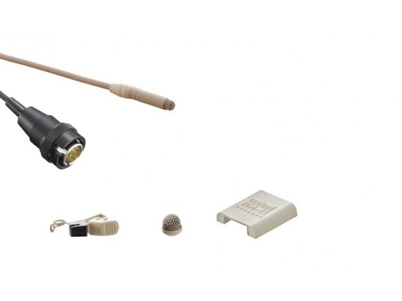 An improved water-resistant mesh screen protects against humidity, perspiration, makeup, bad weather, etc. The miniature profile of the lavalier makes it an ideal solution for professional theater, video recording, film and broadcast applications.