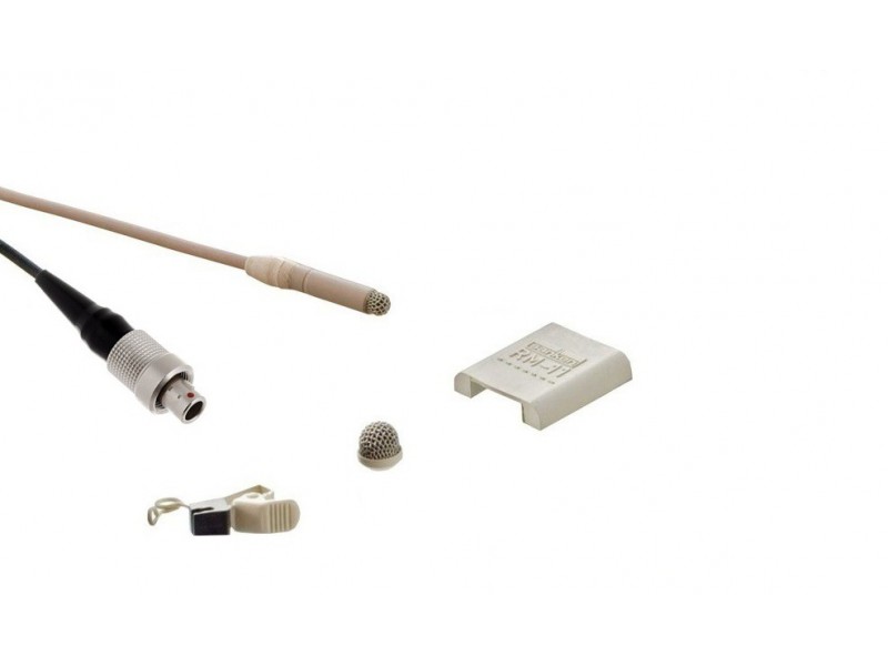 Lavalier Microphone with Lemo 3pin connector for wireless transmitter, 9dB attenuated sensitivity, 1.8m cable, with accessories.