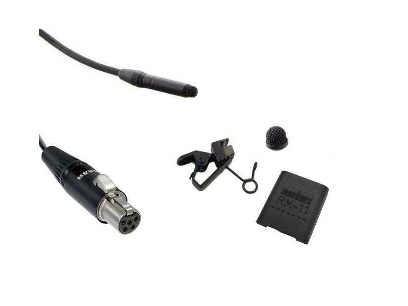 Lavalier Microphone with TA5F connector for wireless transmitter, 9dB attenuated sensitivity, 1.8m cable, with accessories.