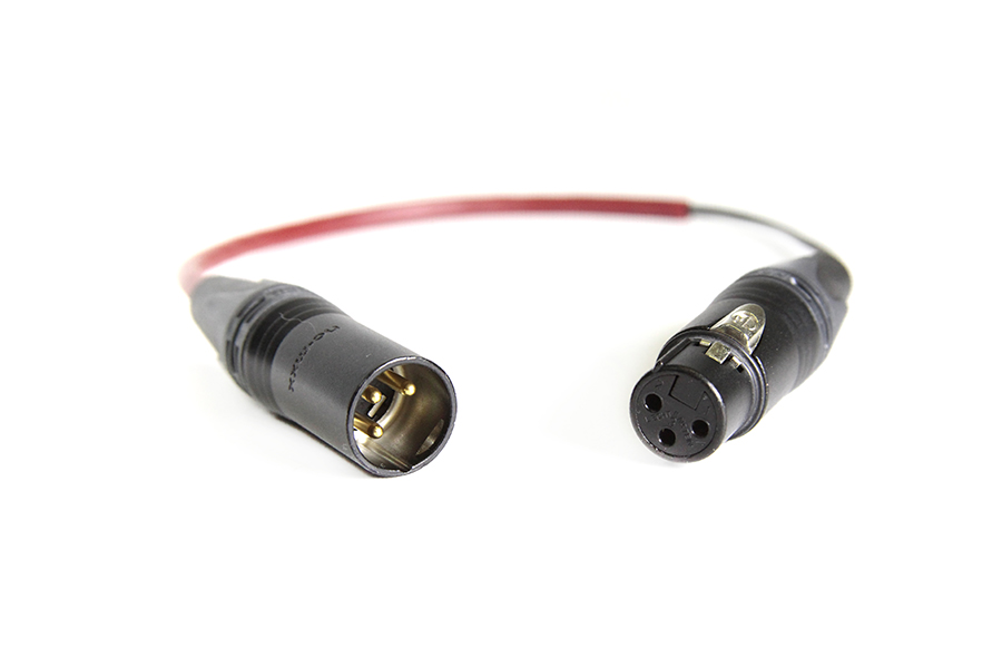 Output male XLR locked in angled position on lightweight boom adaptor, allowing internal or external pole cables and plug-on transmitters to be attached securely.