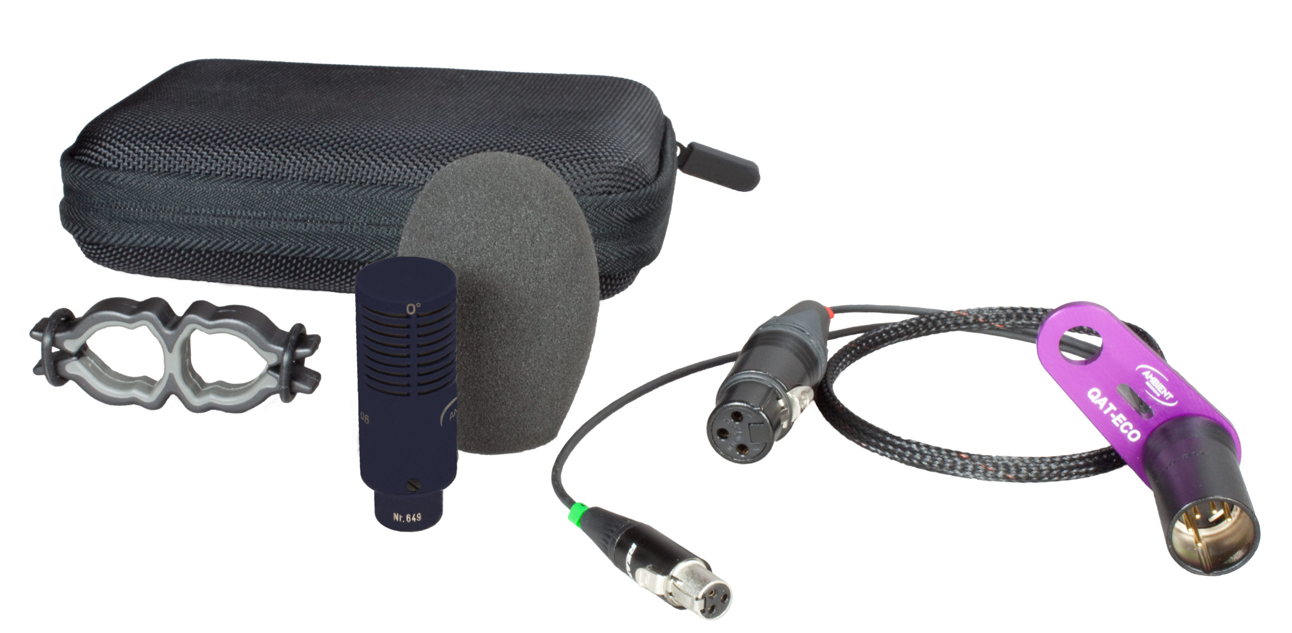 The Ambient Emesser (ATE 308) is a very compact true condenser “figure-of-eight” microphone intended to convert any boom mic on the fly into a M/S stereo system. It allows you to add a bit of stage to the dialogue but also capture textured room tones or even ambience sounds in pristine stereo without the need to change your setup whatever mic is in use.