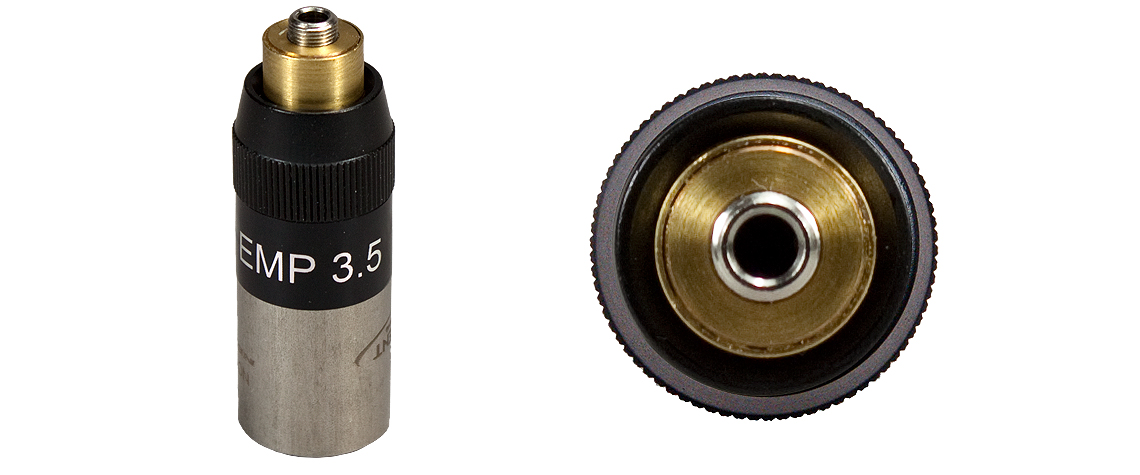 The EMP3.5 Electret Microphone Power Adapter from Ambient Recording allows hardwired use of a lavalier mic by converting phantom 48V to 5.6V electret power, and outputs an electronically balanced signal with low impedance. This adapter is designed for use with Sennheiser evolution microphones and converts a 3.5mm TRS female connector to a standard 3-pin XLR male connector.
