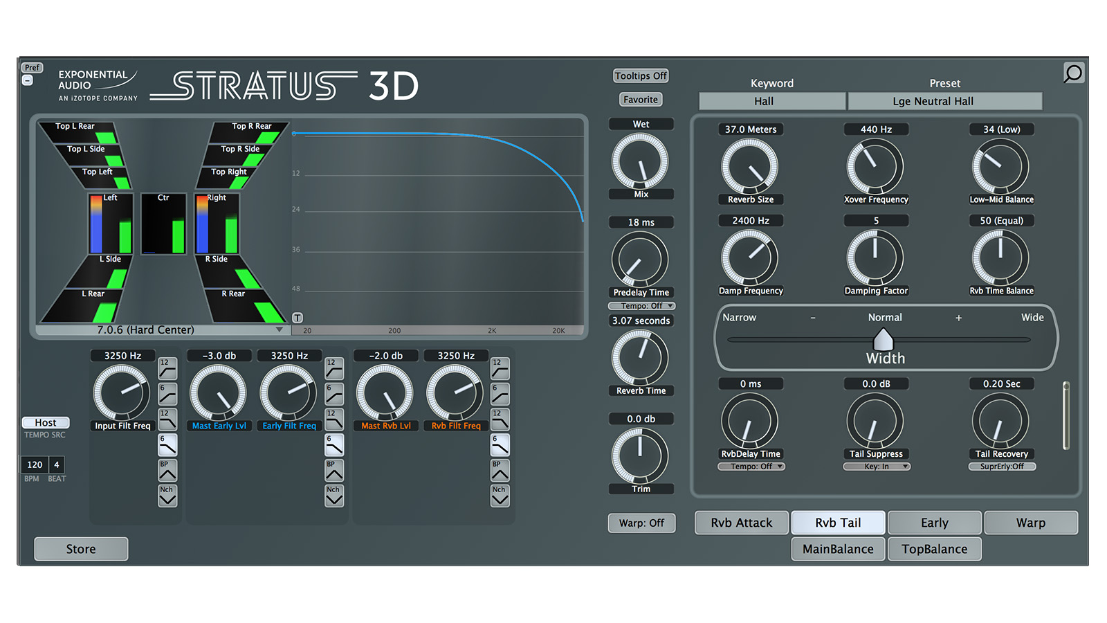 Unleash more than 1,700 surround presets with up to 24-channel support and intelligent multichannel reverb controls. Perfect the depth and dimension in your surround productions with Stratus 3D.