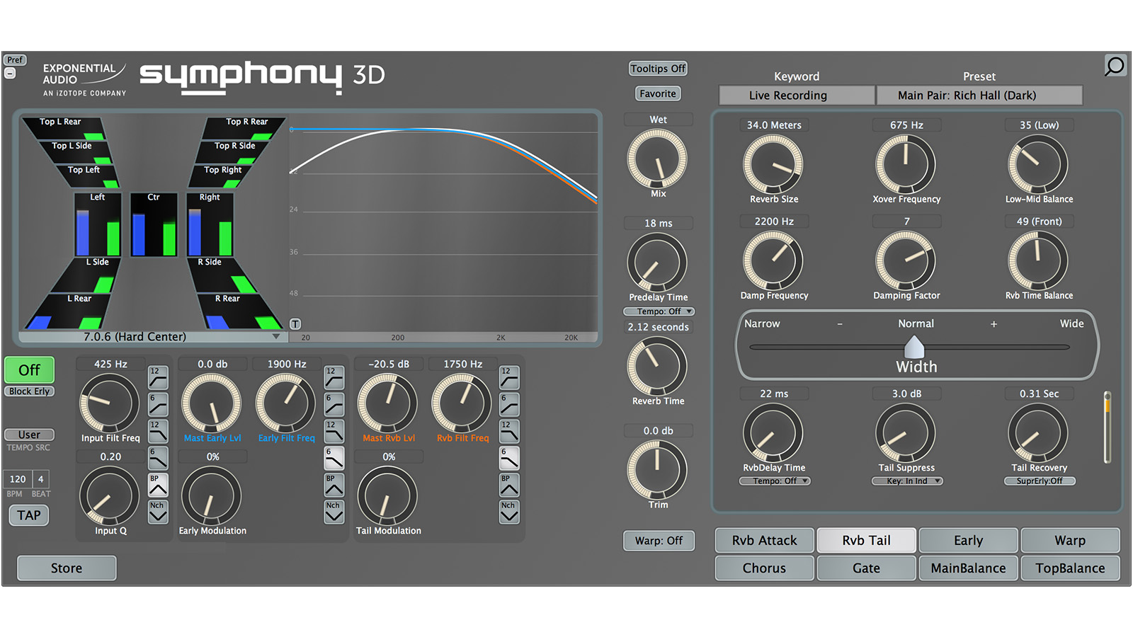Enjoy reverb for immersive surround formats with Symphony 3D. Offering support for up to 24 channels, Symphony 3D brings drama and richness to any post production or music project.