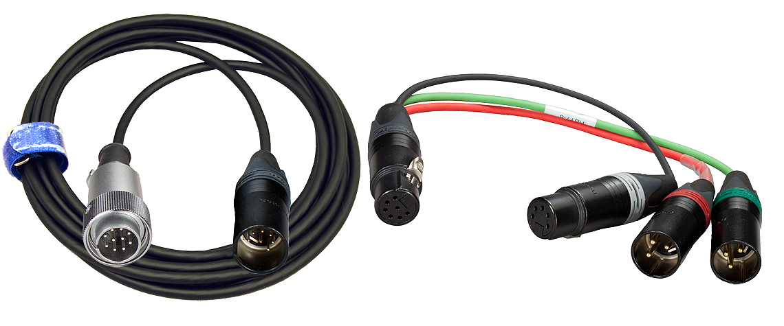 7-pin XLR female to dual 3-pin XLR male and return via 5-pin XLR female |