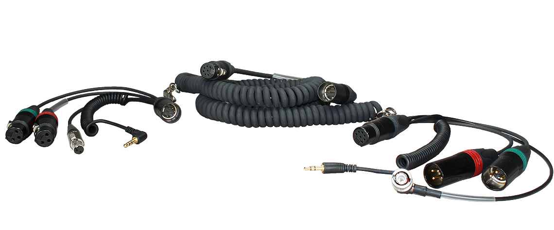 Camera Side: 7-pin XLR female to dual 3-pin XLR male and mono return via 3.5mm TRS mini plug on coiled cord with BNC right angle plug for time code from camera to the SD 552 mixer
