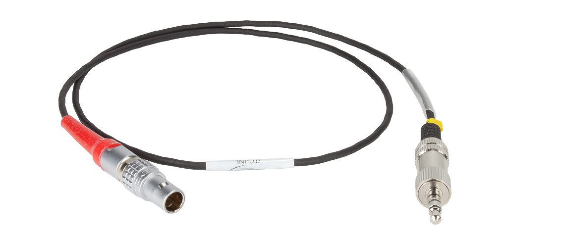 The 23.62" ITC5-INL Input Cable with Lemo 0B 5-pin Connector to 3.5mm TRRS Jack from Ambient Recording is used for connecting all Clockit time code products to iPhone5 & iPad mini via the headset connector.