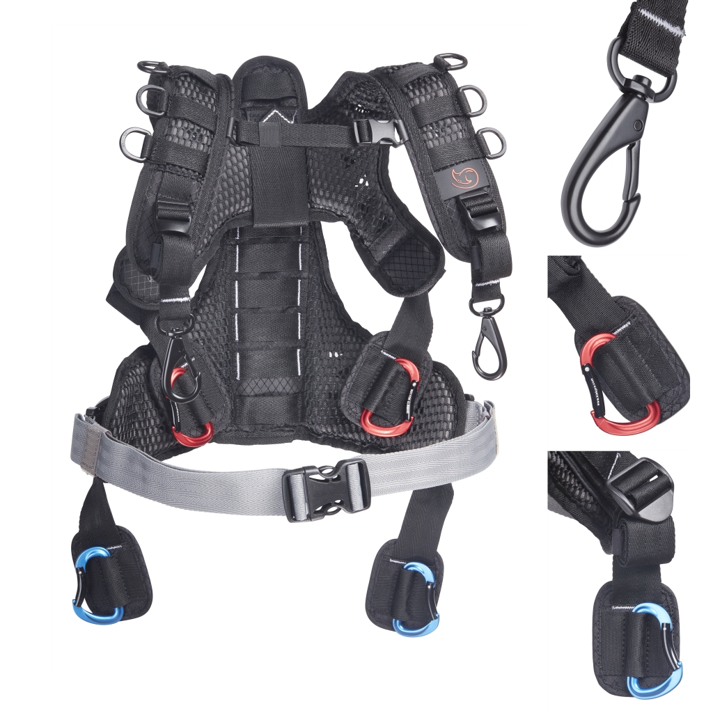 • Plenty of attachment points on front and back of the harness for accessories
