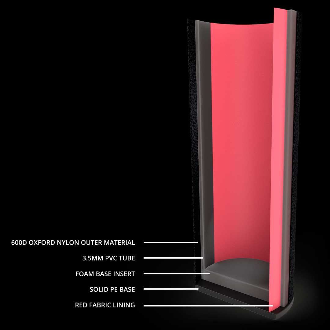 Tubular PVC case with heavy-duty outer fabric (600D Oxford Nylon).