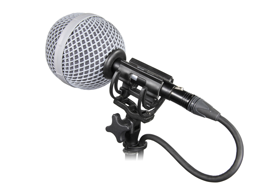 The windshield is constructed of the same material as the full size modular windshields, but rather than clipping to a microphone suspension, the Windshield is mounted directly on the microphone, by a grommet gripping the microphone body. The microphone is pushed through the grommet, to completely enclose the microphone capsule.