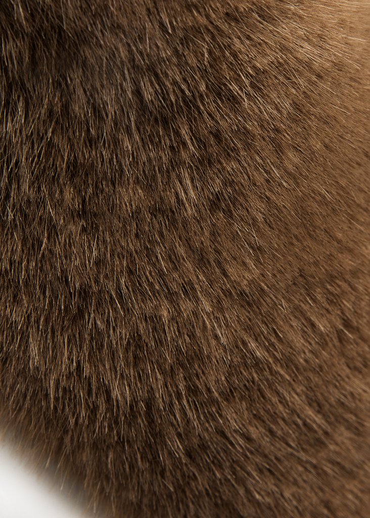 A soft, durable piece of faux-fur in either black, brown, grey, beige, off-white or white