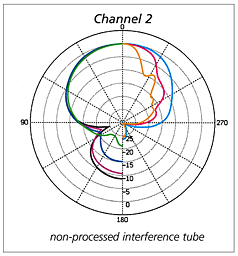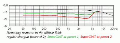 At high frequencies (above 6 kHz) only the signal from the front-facing capsule is used, since the interference tube already offers optimal effectiveness in that range.
