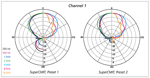 The second output channel always carries the signal of the regular shotgun. The “Preset” button controls the directivity for the signal on the first output channel (SuperCMIT 2 U). Two settings are available: