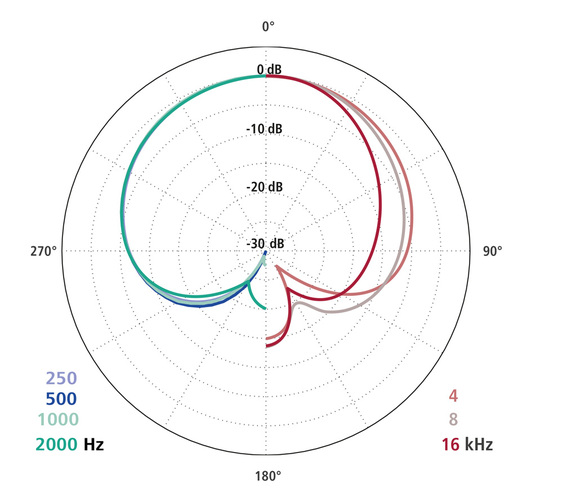 • Nagyon egyenletes iránykarakterisztika; gondosan kontrollált szűkülés nagy frekvenciákon.