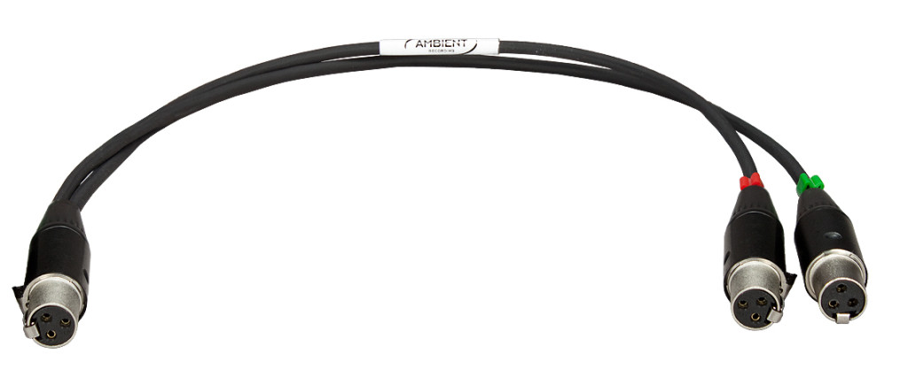 Stereo cable adaptor with 3-pin to XLR female to dual 3-pin to XLR female