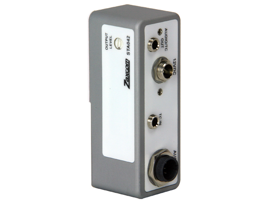 STA042 digital stereo adaptor has a sample rate converting input allowing any sample rate from 44.1 kHz to 48.048 kHz to be connected. The STA042 also has a dedicated time code input, enabling an exact match of audio recorded on the TRX and audio/video recorded on-camera. The new STA042 interface features an output that can be used either as an audio monitor for playback from the memory card or as a time code output to jam other devices. The STA042 includes an external power input for connection to an 8 to 18-volt external power source.