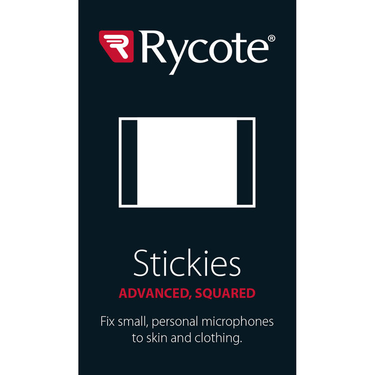 The 25-pack of Stickies Squared Advanced, Adhesive Pads from Rycote are double-sided, hypoallergenic adhesive pads that are used to affix lavalier microphones directly onto skin or on top of clothing. Additionally, the soft fabric is sandwiched between two adhesive pads that prevent the adhered microphone from creaking due to skin or clothing movement. It mounts a lavalier mic silently on clothing for interviews.