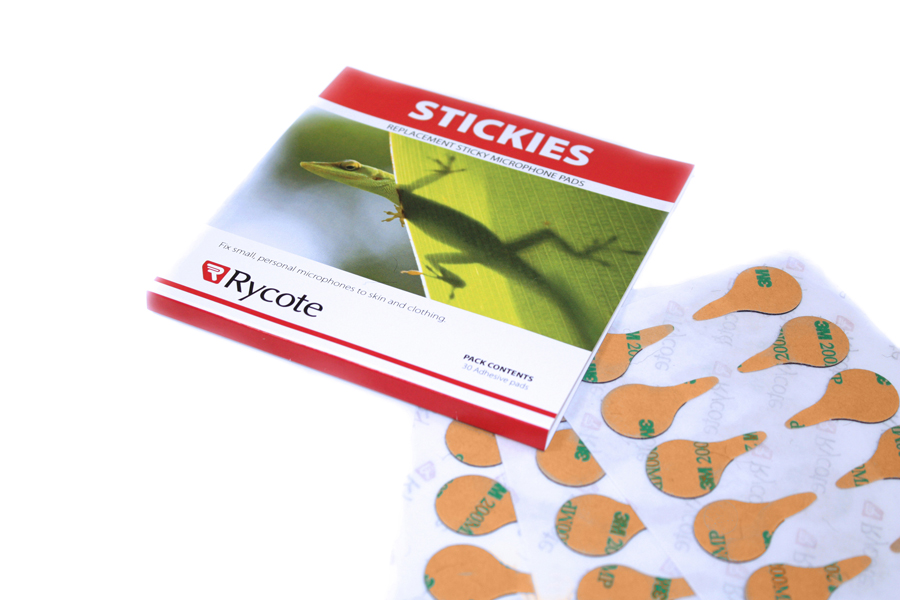A Stickie-k kétoldalú ragasztólapok, melyeket arra használnak, hogy kis, csiptetős mikrofonokat rögzítsenek közvetlenül a bőrre vagy a ruházatra. A lapokat egy puha anyag fogja közre, ami megakadályozza a rögzítés keltette recsegést, amikor a mikrofon rögzítve van. A felhasznált anyagok hipoallergének.