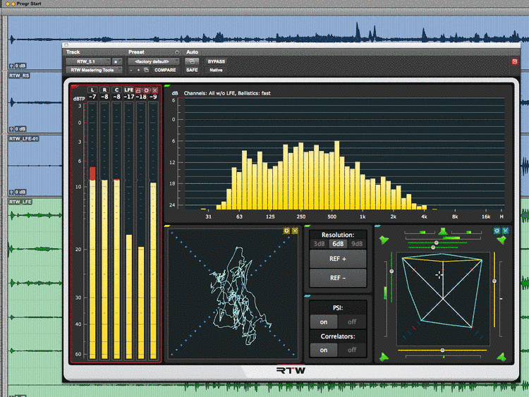 RTW Mastering Tools feature extensive analysis and display functions for mastering, metering and loudness measurements for single- up to multichannel applications including a wide range of PPM scales and displays, VU appearance and TruePPM measurements.