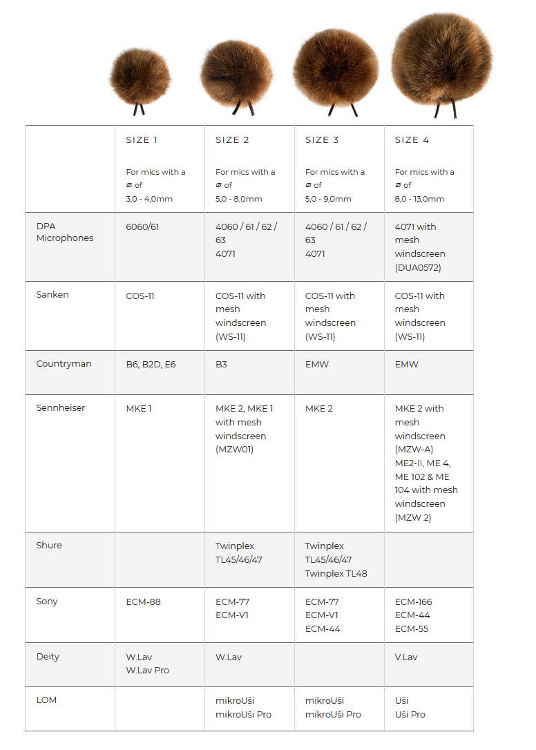 • The Windbubbles are build to stay safe and secure on the Lavalier microphone, and therefore comes in four different sizes.