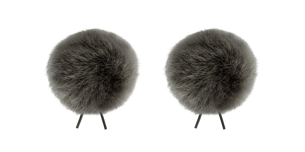 The Twin Windbubbles from Bubblebee Industries is a set of two miniature imitation-fur windscreens that easily fit on lavalier microphones with a diameter of 0.19 to 0.35" (5 to 9mm). The tiny elastic-wire legs make it easy to mount them on the microphones. They can be used to reduce wind noise and vocal plosives in outdoor environments, and are designed to not fall off during use. Examples of compatible microphone models for this windscreen include the Sanken COS-11 (with metal windscreen), Countryman EMW and Sennheiser MKE2 without windshield.