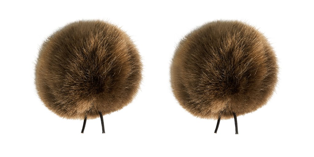 The Twin Windbubbles from Bubblebee Industries is a set of two miniature imitation-fur windscreens that easily fit on lavalier microphones with a diameter of 0.3 to 0.5" (8 to 13mm). The tiny elastic-wire legs make it easy to mount them on the microphones. They can be used to reduce wind noise and vocal plosives in outdoor environments, and are designed to not fall off during use. Examples of compatible microphone models for this windscreen include the Sanken COS-11 (with large metal windscreen), DPA 4060 with metal windscreen and Sennheiser ME4 with windshield.