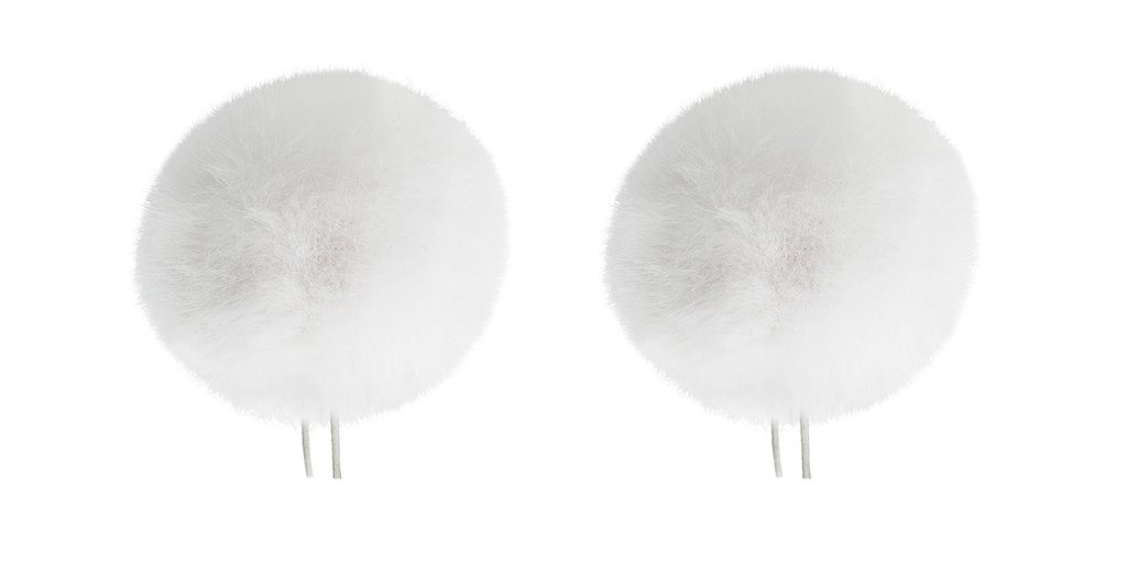 The Twin Windbubbles from Bubblebee Industries is a set of two miniature imitation-fur windscreens that easily fit on lavalier microphones with a diam