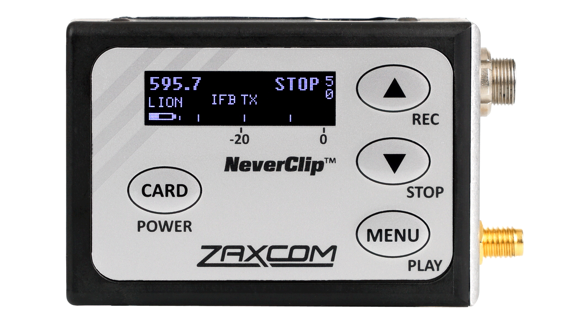 The ZMT3 works with ZaxNet, Zaxcom’s 2.4-GHz RF network that distributes remote control commands, timecode and IFB audio. With ZaxNet, one can remotely control transmitter settings such as gain, frequency channel selection, transport controls and output power levels. The ZMT3 also sends a Quality Control audio signal over ZaxNet so when micing someone you don’t have to go to the cart to hear how it sounds, you can use an ERX to listen to the mic right on the spot.