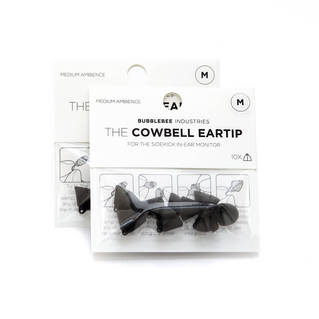 The medium, 10-pack of The Cowbell Eartip from Bubblebee is an accessory eartip for the Sidekick In-Ear Monitor (sold separately). This eartip offers comfortable all-day wearability and medium ambience of your environment, while still having crystal clear communication delivered to the left, right, or both ears.