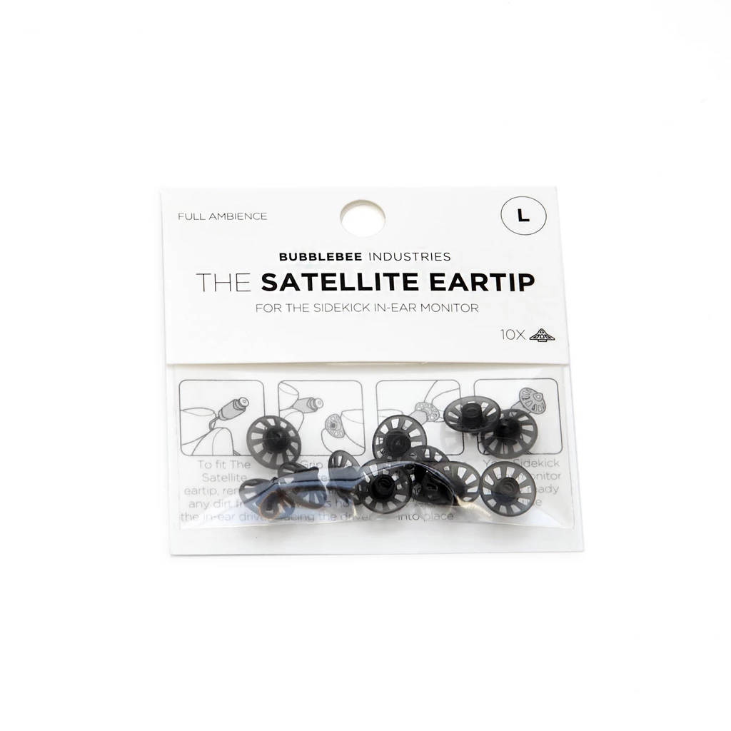 The large, 10-pack of The Sidekick Satellite Eartip from Bubblebee is an accessory eartip for the Sidekick In-Ear Monitor (sold separately). This eartip offers comfortable all-day wearability and full ambience of your environment, while still having crystal clear communication delivered to the left, right, or both ears.